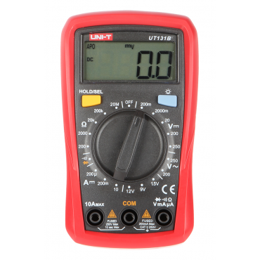 UT-131B je univerzalni digitalni merilnik, ki se uporablja za merjenje napetosti, toka, upornosti, diod. Naprava ima tudi vgrajen preizkuševalnik baterij.