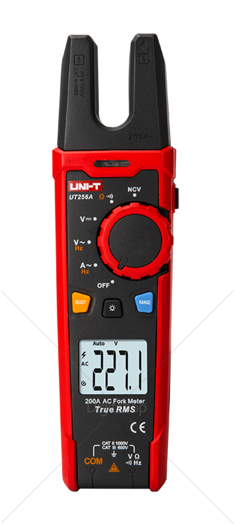 UT256A je visoko zanesljiv viličast multimeter. Njegova edinstvena zasnova omogoča uporabnikom merjenje toka s preprostim premikanjem žice znotraj odprtine „vilic“ preko oznake. Brez mehanskih delov ta merilnik ne predstavlja tveganja za kakršno koli mehansko okvaro.