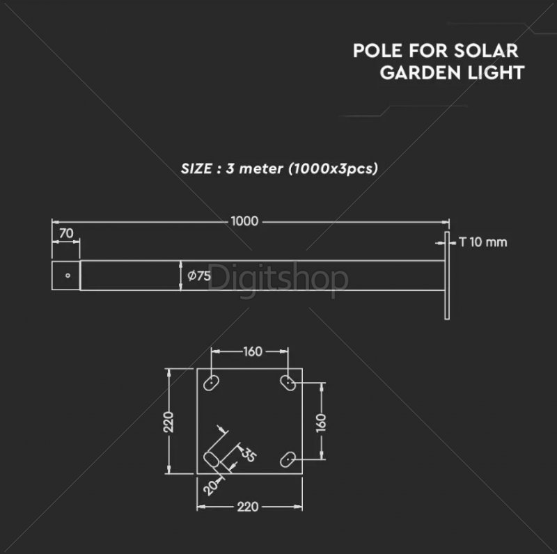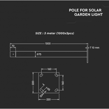 V-TAC SKU11258 DROG ZA SOLARNO SVETILKO 3M