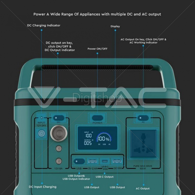 - Solarno polnjenje: DC18V-22V Max 5A.