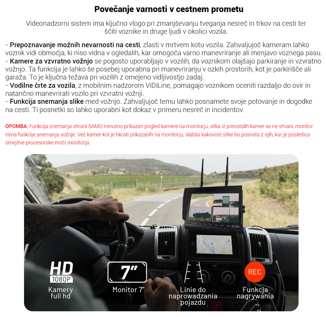 Videonadzorni sistem ima ključno vlogo pri zmanjševanju tveganja nesreč in trkov na cesti ter ščiti voznike in druge ljudi v okolici vozila.