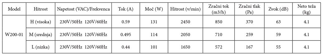 1) Ohišje ventilatorja je izdelano iz ognjevarnega materiala