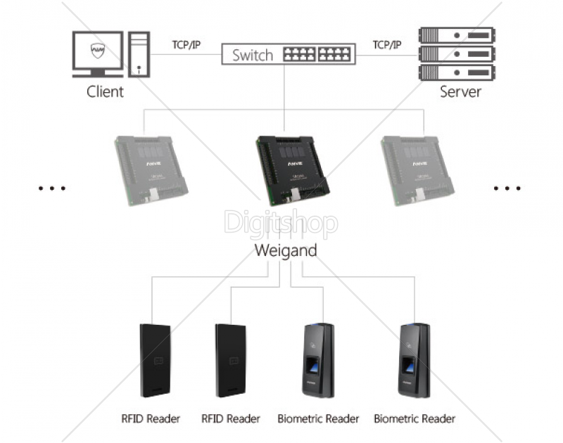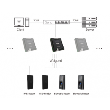 • 4 relejni izhodi neposredno upravljajo vrata, 4 vmesniki čitalnika podpirajo skoraj vse Wiegand 26 čitalce na trgu.