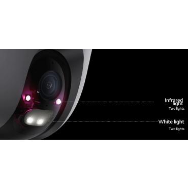 Kamera je opremljena z 2 vgrajenima visokozmogljivima belima lučkama in 2 infrardečima lučkama, zato lahko posname barvne slike tudi v najtemnejši noči. Visoko zmogljive bele luči se bodo samodejno vklopile, ko bodo zaznani človeški gibi za snemanje barvne slike.