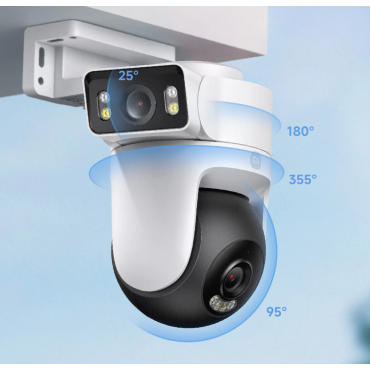 Dvojna kamera za celovit nadzor. Ena naprava z več koti gledanja za večjo varnost in zanesljivost. Združite fiksne + PTZ kamere. Fiksna kamera spremlja fiksne kote gledanja. Premično kamero PTZ je mogoče prilagodljivo upravljati prek aplikacije Xiaomi Home za pokrivanje različnih kotov.